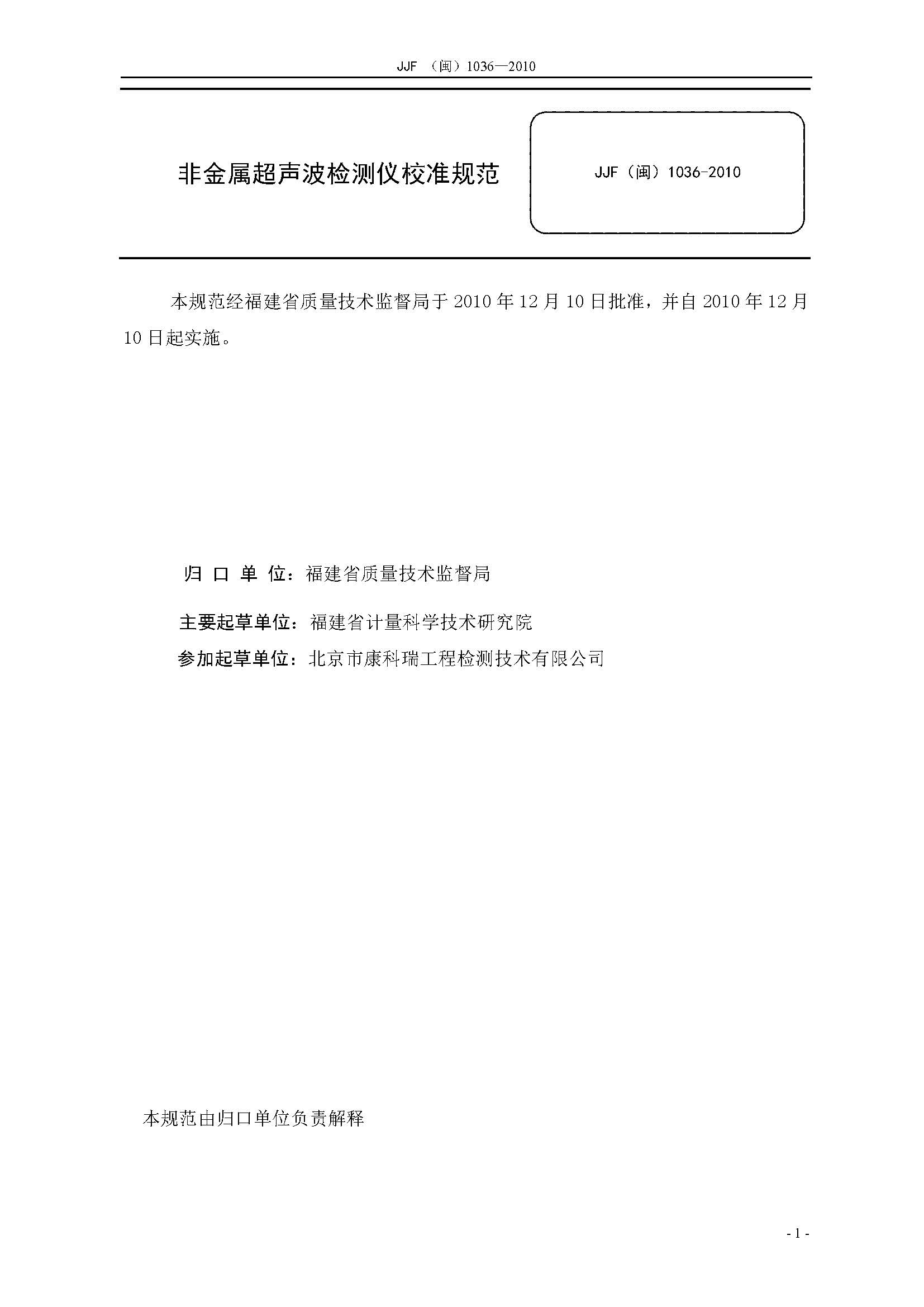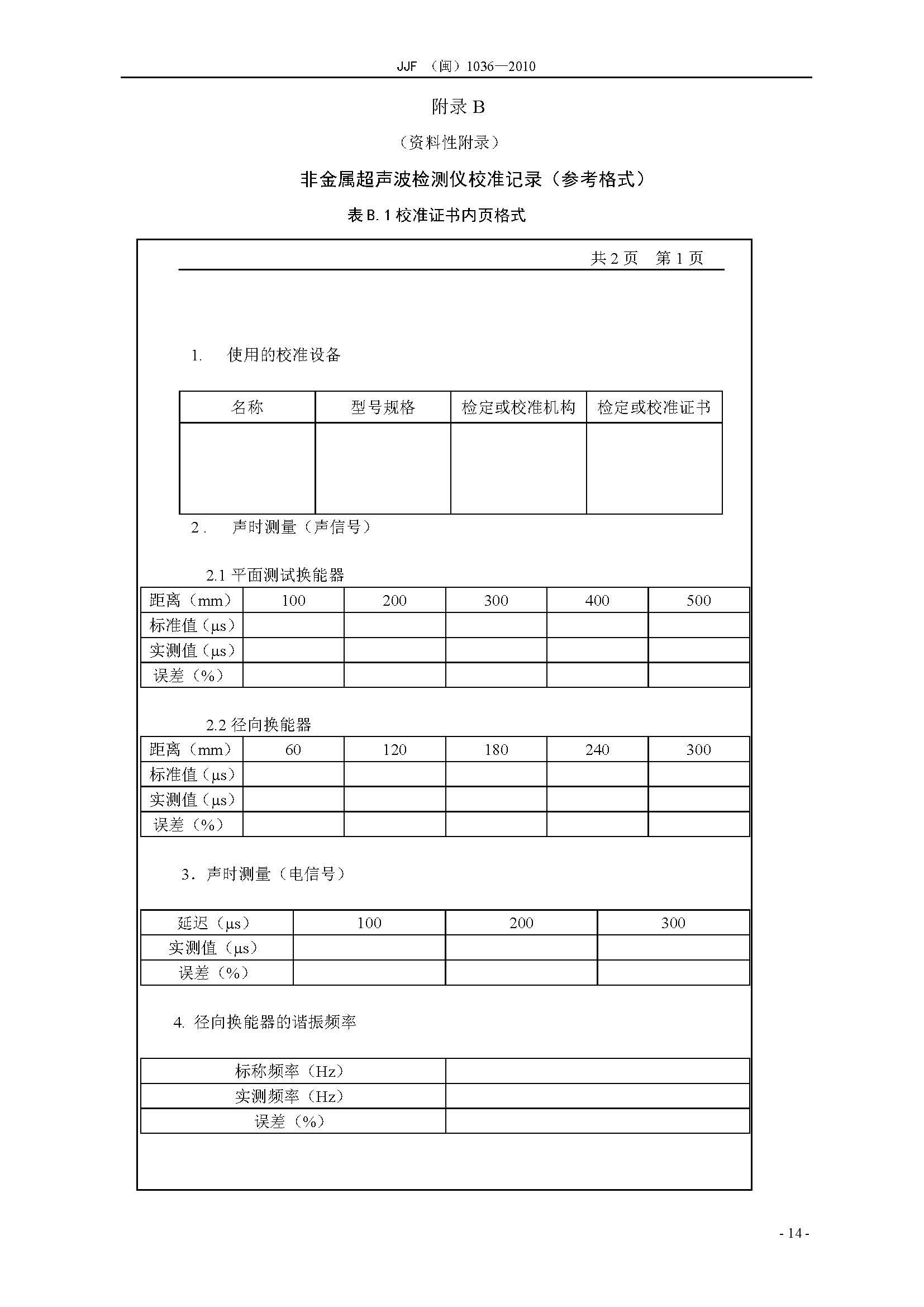 JJF(闽)1036-2010非金属超声波检测仪校准标准